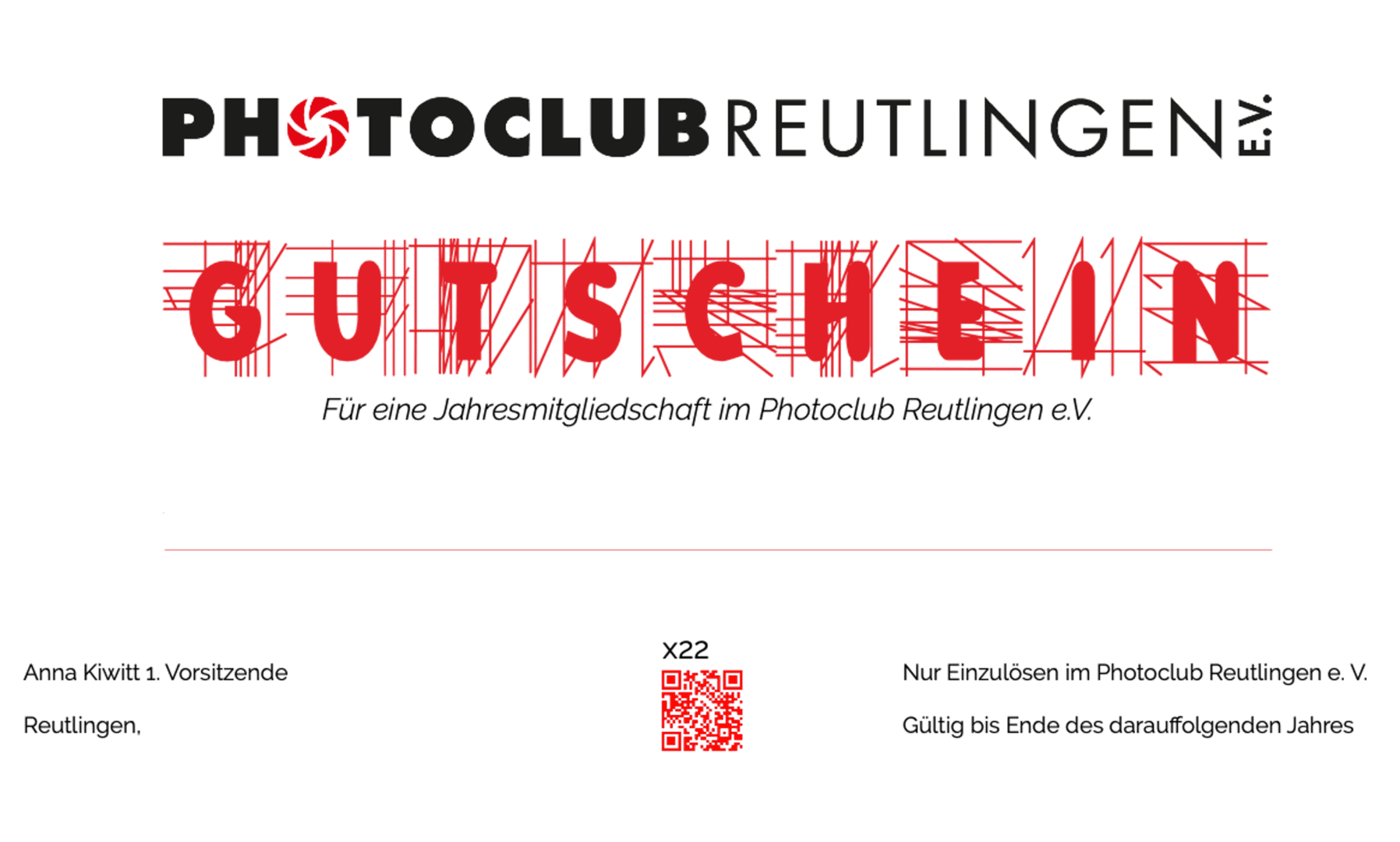 Sie möchten einen Gutschein (Wert 70,00€) für eine Jahresmitgliedschaft im Photoclub Reutlingen verschenken?