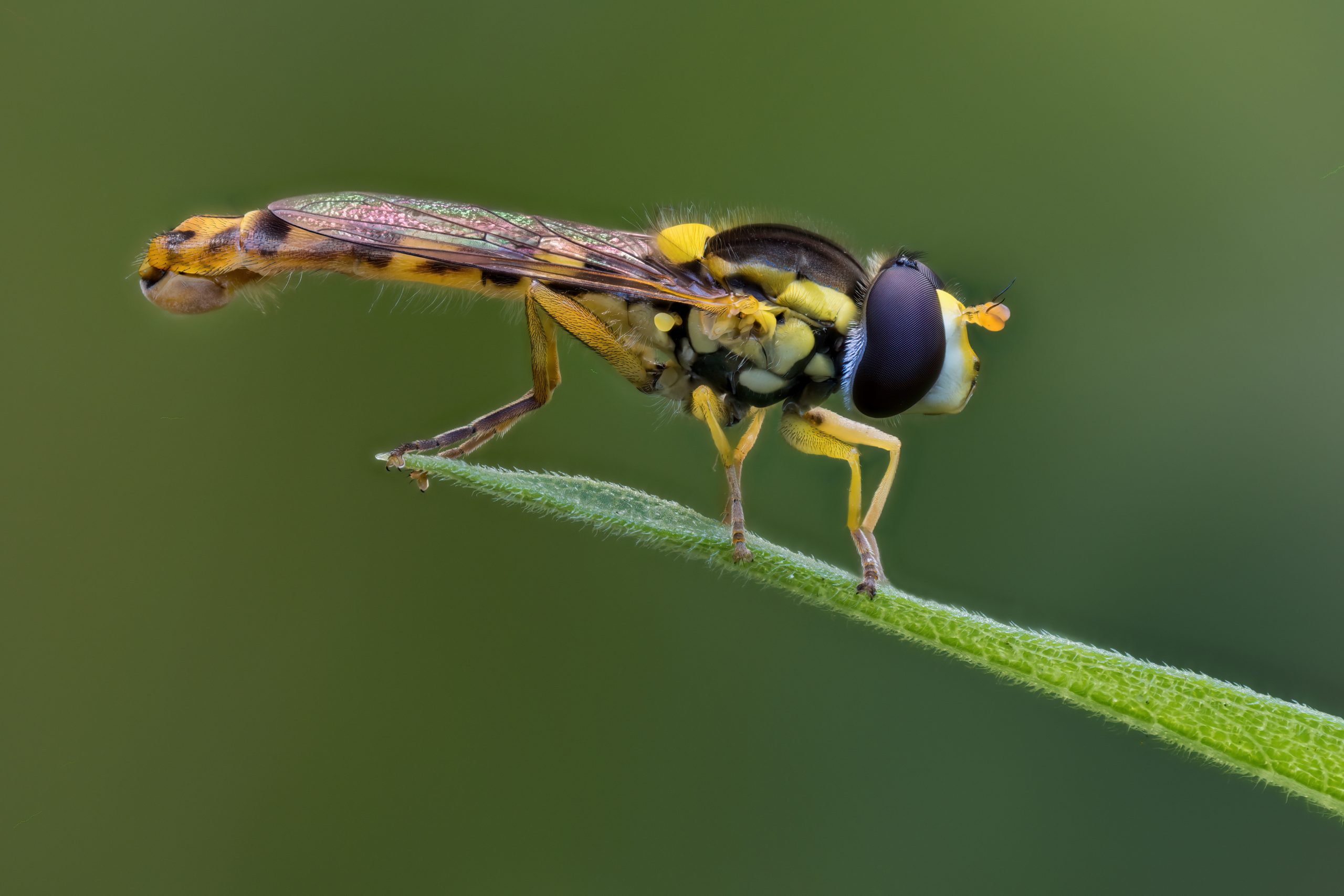 Auf Entdeckungstour bei den artenreichsten Vertretern auf unserem Planeten. Vorgestellt wird ein bunter Querschnitt unserer heimischen Insekten. Makrofotografie und Stacking-Technik ermöglichen wunderbare Einblicke in ihre Gestalt, Farben und Verhaltensweisen. (Das anliegende Foto zeigt eine Stiftschwebfliege).
